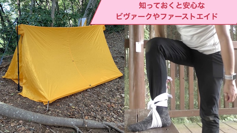 ・緊急露営の実演:ツエルト設営・エマージェンシーシートの使い方など