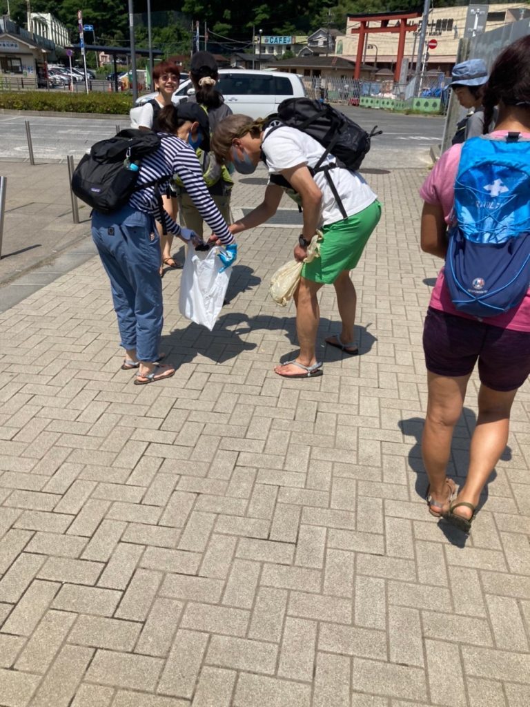 下山後高尾山口駅周辺のゴミ拾いをします