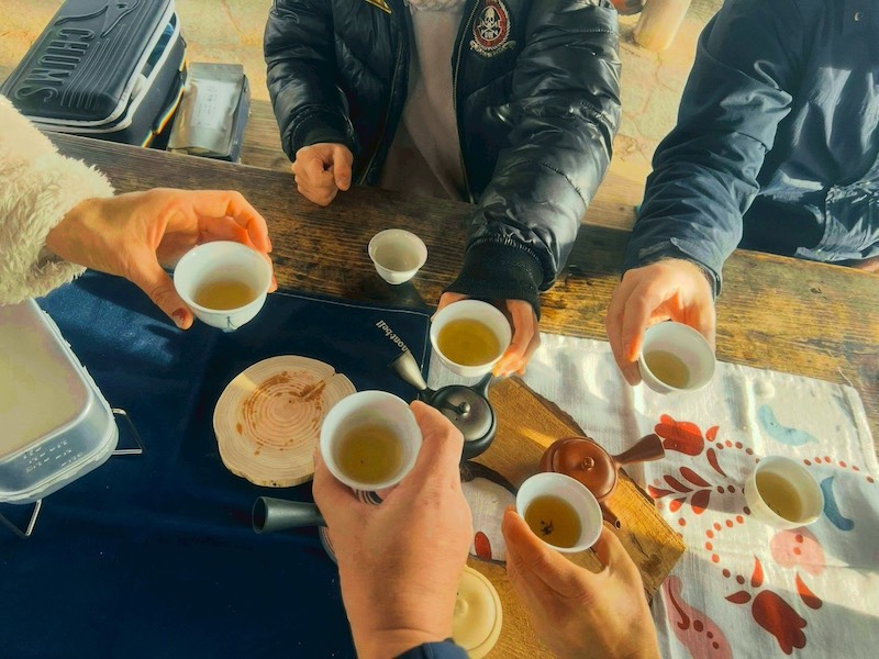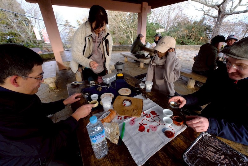 急須と湯呑みをお貸ししますので、ご自身で作った出来立てほうじ茶を山頂の風景と共に味わってください。